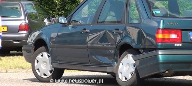 De personenauto, met een aantal fikse deuken en een scheefstaand wiel moest worden afgesleept.