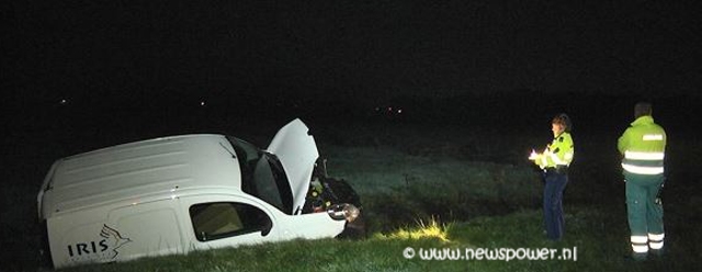 De man kwam door onbekende in de middenberm terecht en gaf daarom een ruk aan het stuur. Maar hij kreeg het busje niet meer onder controle, waarna het voertuig in een droge aan de andere kant van de weg tot stilstand kwam. Het busje raakte hierbij beschadigd.