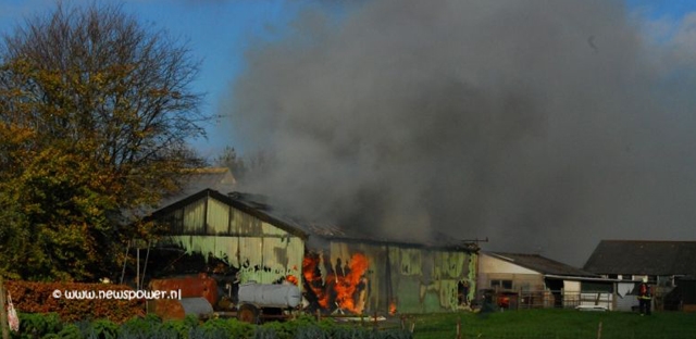 De brand in de loods was na een uur grotendeels uit. Wel was de brandweer de hele middag bezig met nablussen, omdat er nog stro in brand stond.