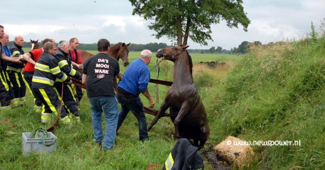 Eenmaal ter plaatse troffen de brandweerlieden een paard in de sloot aan. Het lukte het dier niet, na ruim een kwartier ploeteren, om daar op eigen kracht weer uit te komen.