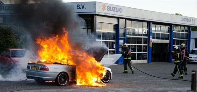 De bestuurder reed op de Europaweg in de havenstad, toen het mis ging. Hij wist nog net een garage in de buurt te bereiken. Maar op de parkeerplaats moest hij toezien hoe zijn bolide compleet uitbrandde.