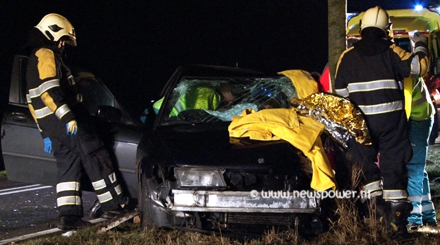 De man uit Ten Boer raakte hierbij bekneld in zijn auto. Hij is met behulp van de brandweer uit de auto gehaald. Zijn 44-jarige inzittende vriendin raakte licht gewond. Beide zijn voor behandeling overgebracht naar het UMCG te Groningen. In hun auto zat ook een hond, deze is opgevangen door de dierenambulance.