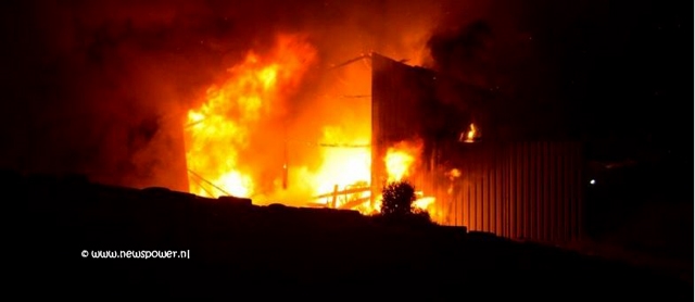 (VIDEO) Nieuw-Pekela – De brandweer rukte afgelopen nacht omstreeks kwart over twee uit naar een brand bij een bedrijf in Nieuwe-Pekela. Op een melkveebedrijf aan de Jan Oldenburgerstraat was een uitslaande brand uitgebroken. Een grote schuur naast de melkstal aan de raakte door nog onbekende oorzaak in brand.