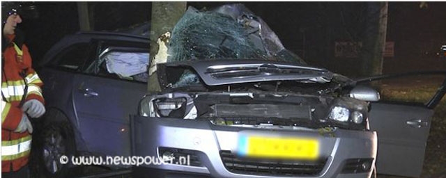 De onherstelbaar beschadigde auto is door een bergingsbedrijf afgesleept.