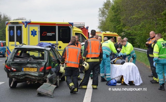 Beiden zaten bij hun man en/of vader, een 65-jarige man uit Midwolda, in de auto. Het gezin uit Midwolda stond stil in een file. Hij werd door een achteropkomende auto, bestuurd door een 36-jarige man uit Appingedam, plotseling aangereden. De Damster had de file op de snelweg te laat opgemerkt. De man uit Midwolda botste door de klap van de aanrijding tegen twee voor hem stilstaande auto’s.