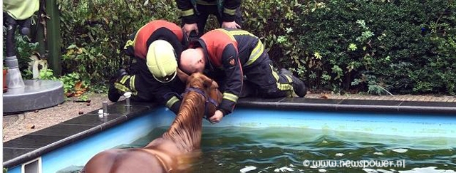 De brandweer moest opdraven om het dier uit het zwembad te halen. Het water was gelukkig niet diep, dus het paard kon gewoon rechtop staan. Met behulp van touwen om de buik van het paard lukte het de brandweer uiteindelijk het dier te bevrijden.