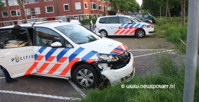 De politiewagen raakte hierbij behoorlijk beschadigd en moest door een bergingsbedrijf worden afgesleept.