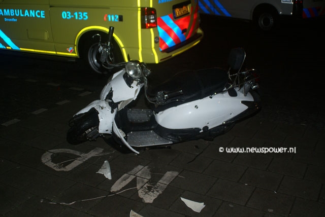De scooterbestuurder uit Klazienaveen kon de auto niet meer ontwijken en kwam ten val. Het slachtoffer is met beenletsel, per ambulance, overgebracht naar het Scheperziekenhuis in Emmen. De automobilist kwam met de schrik vrij.