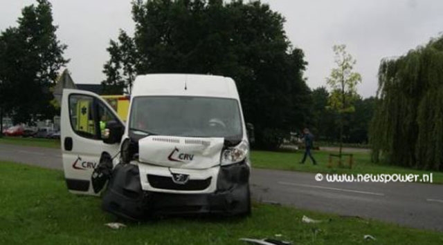 Oude-Pekela – Een bedrijfsbusje en een personenauto zijn maandagochtend op de Turfweg N367 bij Oude Pekela op elkaar gebotst.