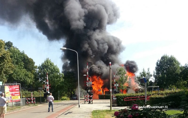 Er kwam volgens de brandweer veel rook vrij. Ze houdt er echter rekening mee dat er ook asbest in het pand gebruikt is.