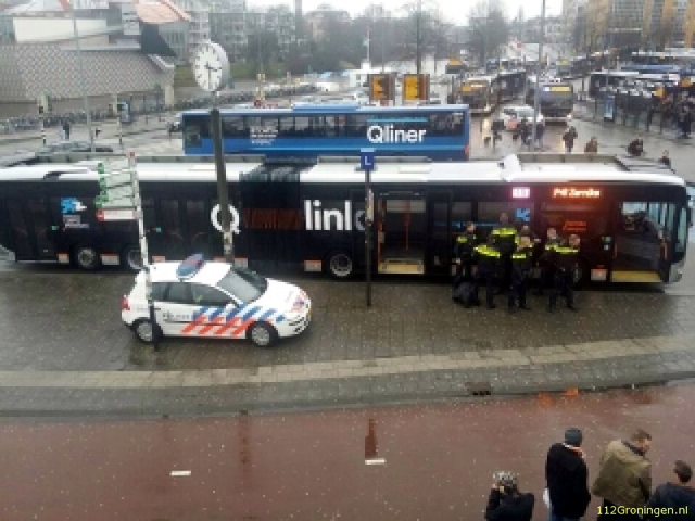 De betreffende bus werd bij het busstation aan de Stationsweg aangetroffen. Een jongeman die aan het aan de politie doorgegeven signalement voldeed liep buiten de bus. Deze droeg inderdaad een foedraal met daarin een op een mes gelijkend voorwerp zichtbaar om zijn arm.