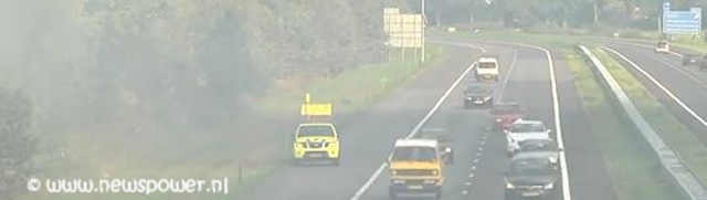 (VIDEO) Hoogeveen –  Zaterdagmiddag heeft het verkeer op de A37  ter hoogte van Hoogeveen behoorlijk wat last gehad van rook. In de buurt van de oprit Alteveer stonden een aantal strobalen in brand. Uit veiligheidsoverweging werden via een pijlwagen van Rijkswaterstaat de weggebruikers gewaarschuwd om hun snelheid tijdelijk aan te passen. Na ruim drie uur wist de brandweer het vuur te blussen.